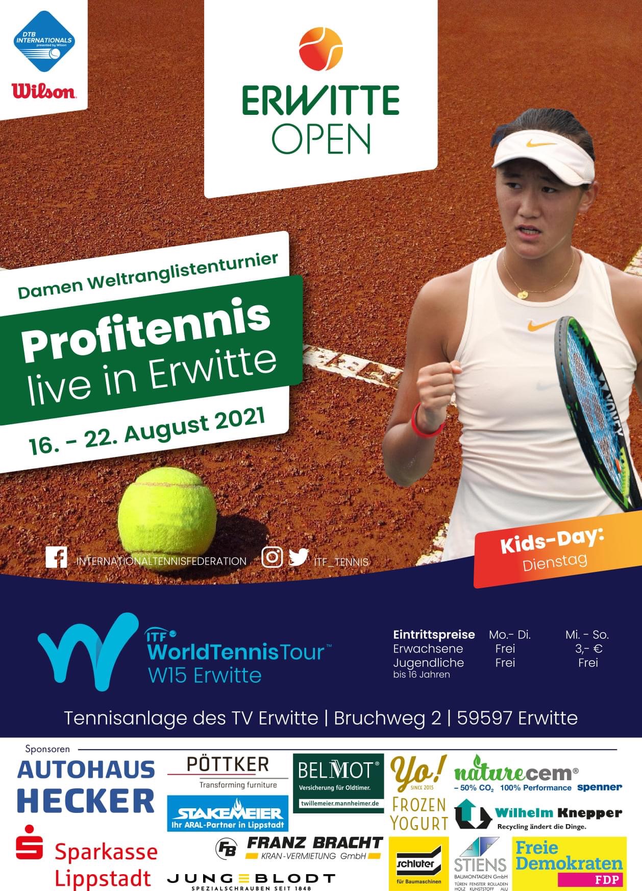 Das Damen-Weltranglistenturnier wird auf auf der Tennisanlage des TV Erwitte am Bruchweg 2 ausgetragen.